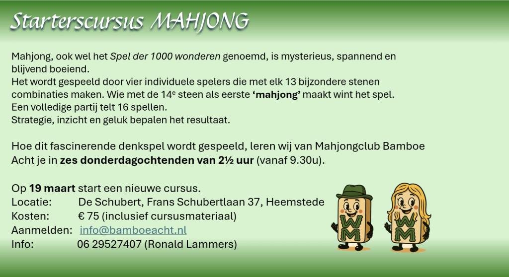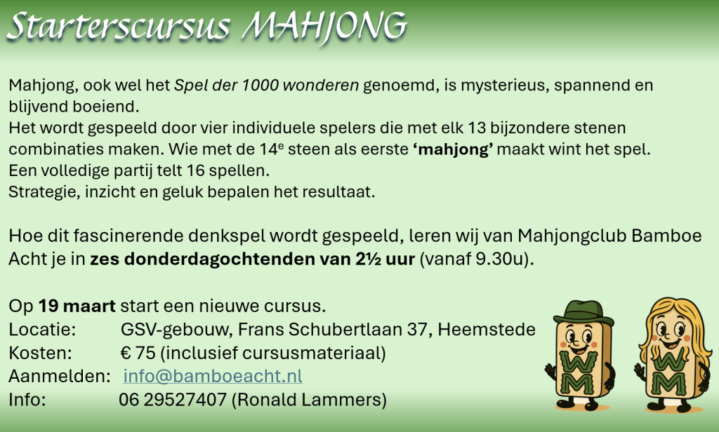 laat wekelijks weten of je wel of niet komt spelen d.m.v. een appje aan Jacqueline (vóór 17u)