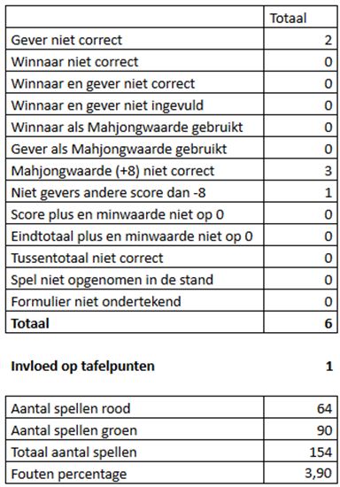 geconstateerd, waarvan een invloed had op de tafelpunten(!), is het toch wel handig