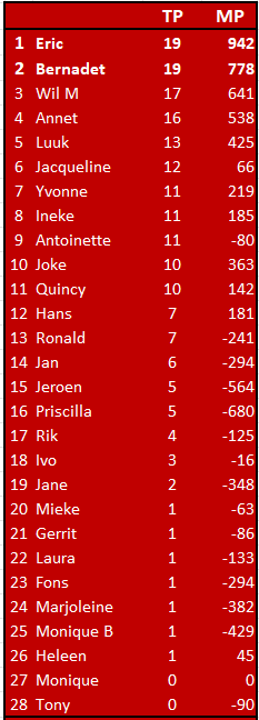 laat wekelijks weten of je wel of niet komt spelen d.m.v. een appje aan Jacqueline (vóór 17u)